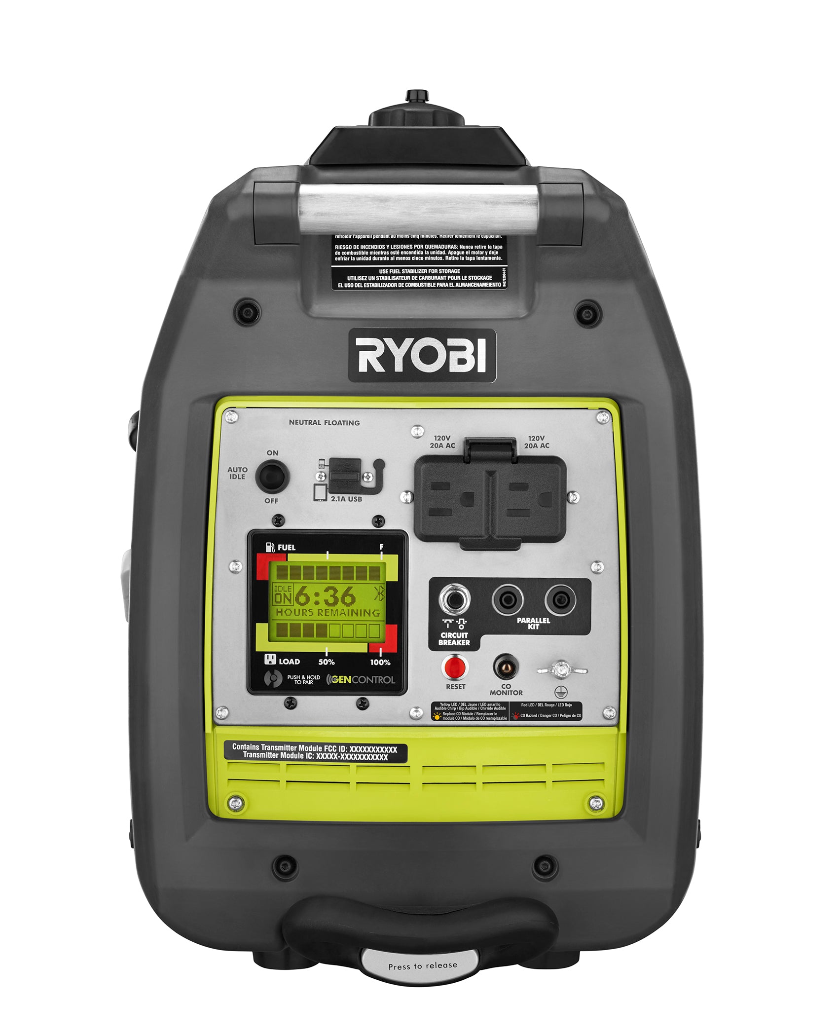 Generador inverter Ryobi super silencioso, con capacidad de auto apagado al detectar niveles de monóxido de carbono altos.