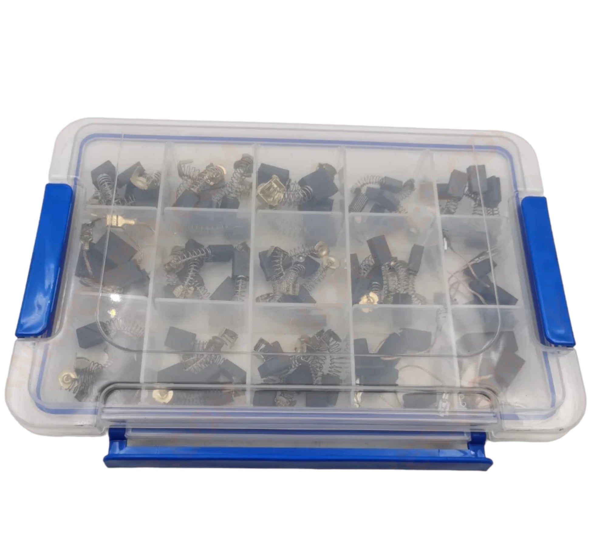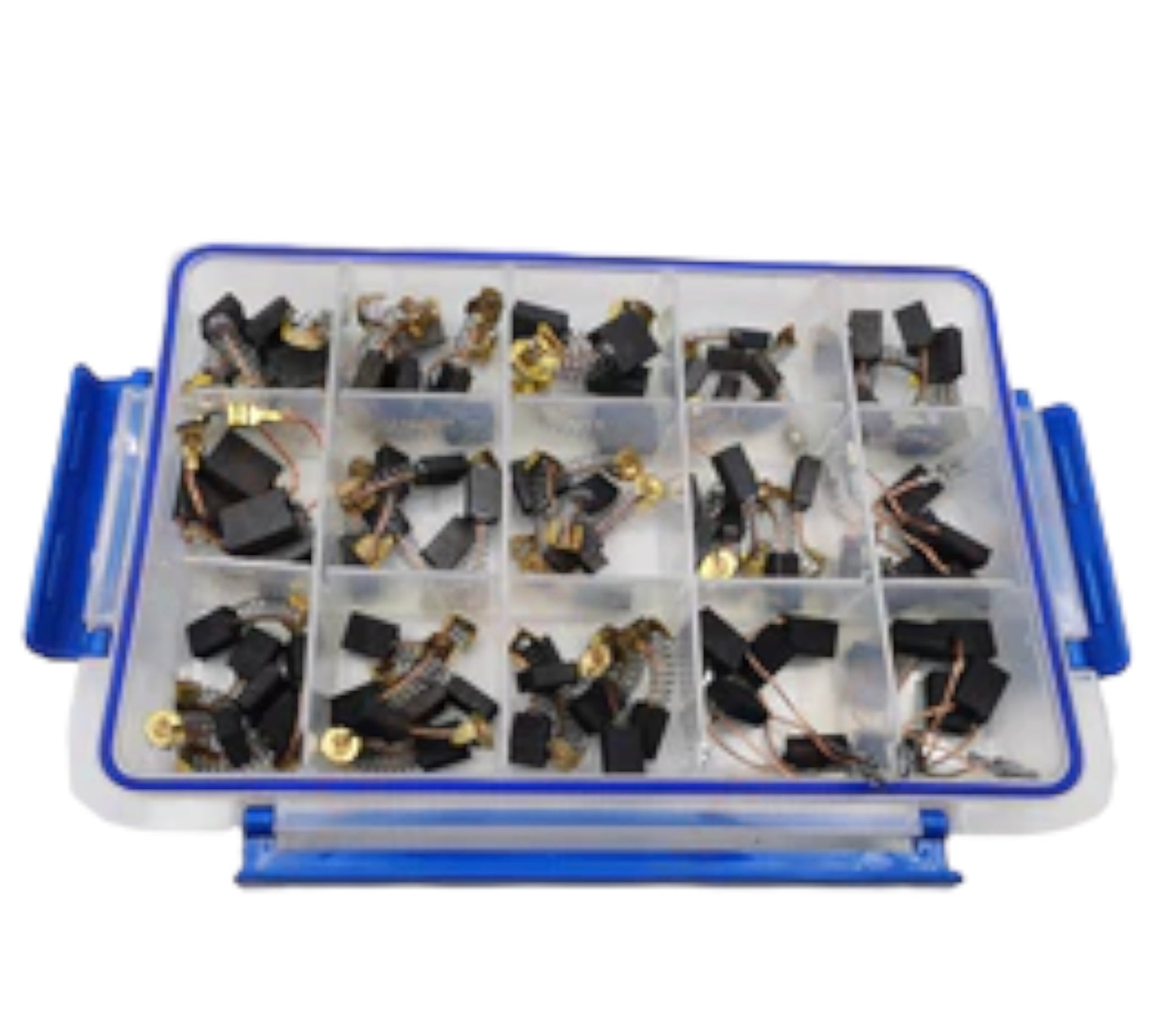 120 Escobillas Universales para diferentes equipos eléctricos divididas por medida.